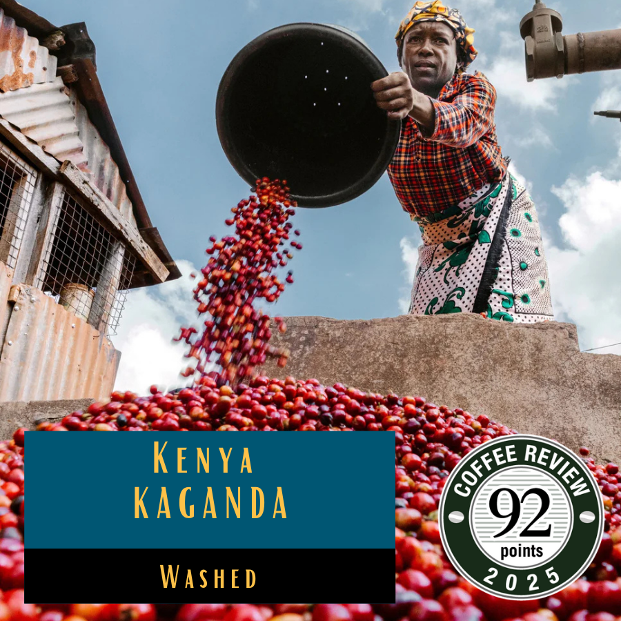 Kaganda Factory is run by IKaganda Farmers Cooperative Society (FCS). Kaganda FCS operates in the Murang'a region of Central Kenya. 1,050 farmers cultivate SL28. SL34, Ruiru 11 and Batian on small farms that are, on average, less than 1 hectare. The cooperative provides essential services such as farm inputs, training programs, and marketing assistance, ensuring that Kaganda FCS AA coffee upholds its high standards of quality and consistency.